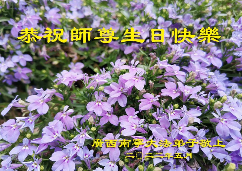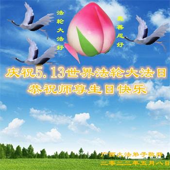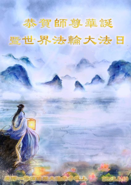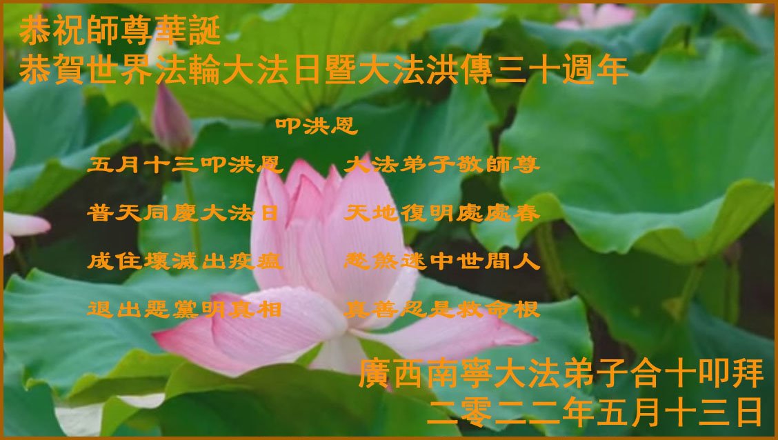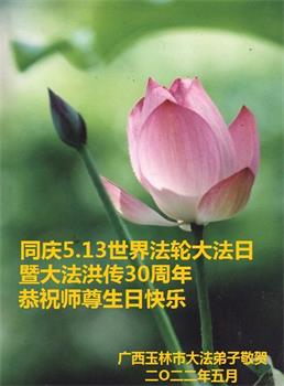 【明慧网二零二二年五月十三日】 广西南宁一大法弟子恭祝师尊生日快乐!恭贺世界法轮大法日!