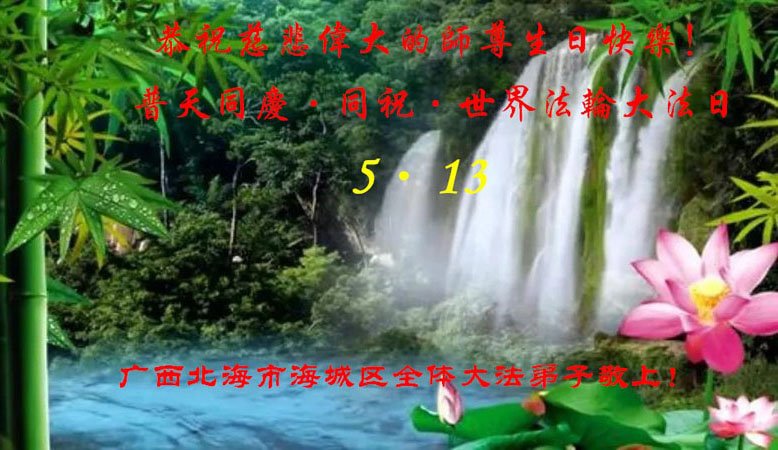 广西北海市海城区全体大法弟子恭祝师尊生日快乐!恭贺世界法轮大法日!