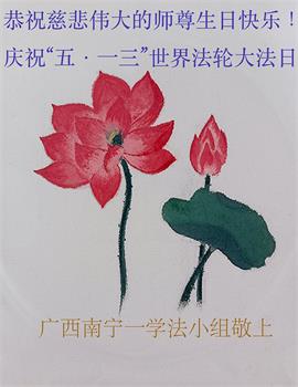 广西南宁一学法小组大法弟子恭贺世界法轮大法日!恭祝慈悲伟大的师尊生日快乐!