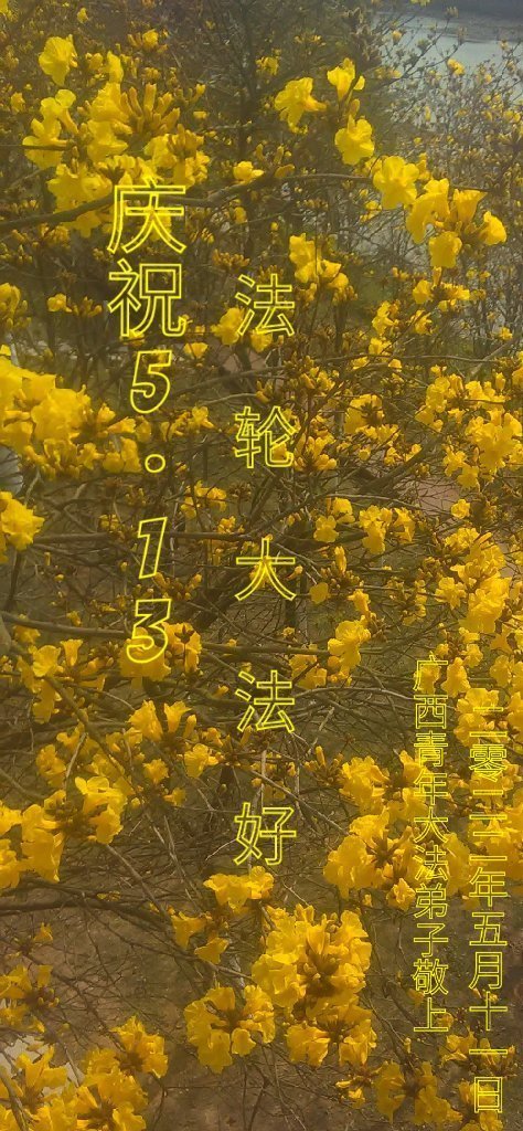 北海舰队转业干部恭贺5.13世界法轮大法日!不负师恩,兑现誓约,全力讲真相救人,完成历史使命。 2022年5月10日 广西壮族自治区玉林市大法弟子敬贺法轮大法日!