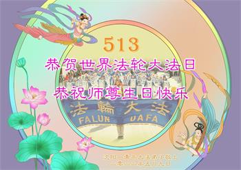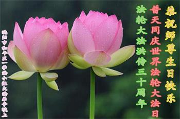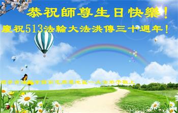 恭祝法轮大法洪传世界三十周年! 恭贺5·13世界法轮大法日! 弟子们无法用语言表达对师尊的感恩之心,我们一定要在法中精進,再精進! 助师正法,多救众生,报答师尊的浩荡佛恩! 辽宁省沈阳市一大法弟子恭祝慈悲伟大的师尊华诞!