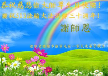 庆祝5·13世界法轮大法日! 恭贺法轮大法洪传30周年! 辽宁省沈阳市一名大法弟子恭祝师父生日快乐!