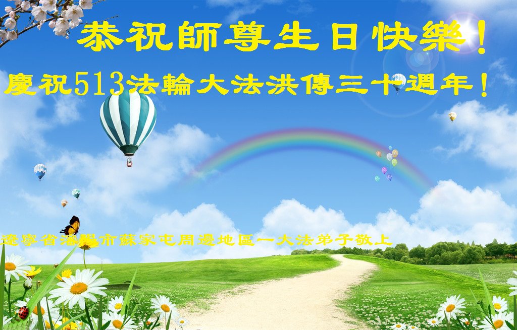 恭贺法轮大法洪传三十周年! 辽宁省沈阳市新城子区全体大法弟子恭祝师尊生日快乐!