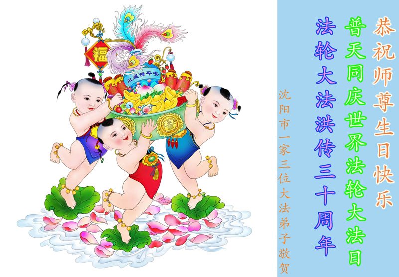 【明慧网二零二二年五月十三日】 辽宁沈阳市一家三位大法弟子恭祝师尊生日快乐!恭贺世界法轮大法日!