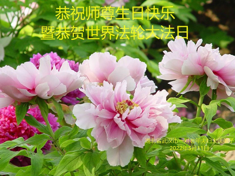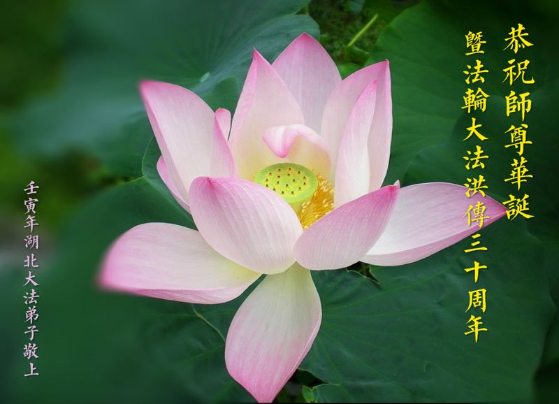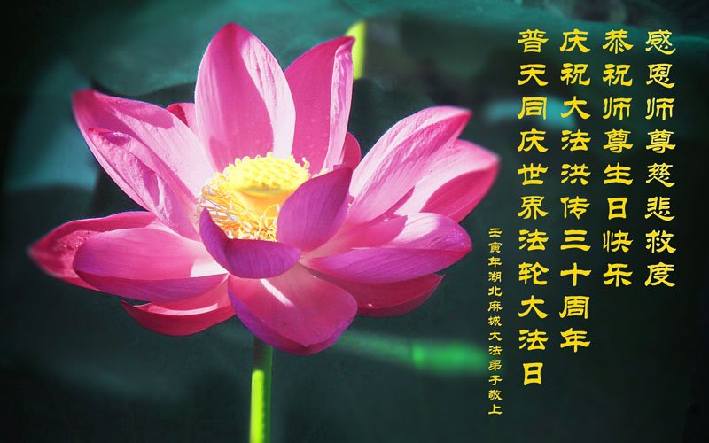 恭祝法轮大法洪传全世界三十周年! 谢谢师尊救度苍穹、救度众生!弟子不会忘记使命,做好三件事,坚定不移的跟着师尊走, 湖北省武汉市武昌一学法小组大法弟子恭祝师尊生日快乐!恭贺世界法轮大法日!