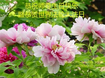【明慧网二零二二年五月十三日】 湖北省黄冈市麻城市大法弟子恭祝师尊生日快乐!庆祝法轮大法洪传三十周年!恭贺世界法轮大法日!