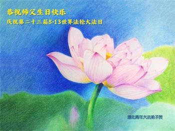 谢谢师父的慈悲救度!我们在修炼的路上要更加勇猛精進,助师正法,救度更多的众生。 湖北大法弟子恭祝慈悲伟大的师尊生日快乐!恭祝世界法轮大法日!
