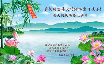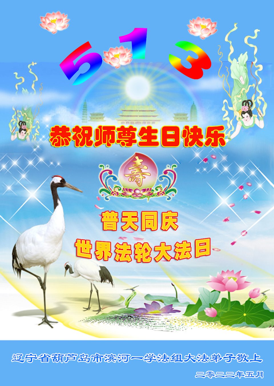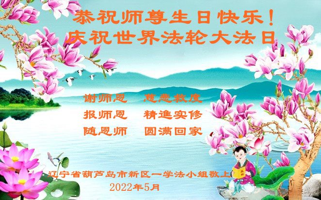 【明慧网二零二二年五月十三日】 辽宁省葫芦岛市滨河一学法组大法弟子恭祝师父生日快乐!