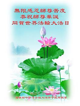 辽宁葫芦岛滨河一大法学习小组全体大法弟子恭祝慈悲伟大的师尊七十一岁华诞!庆祝法轮大法洪传世界30周年!同颂世界法轮大法日23周年!