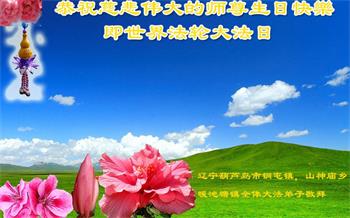辽宁省葫芦岛市一大法弟子恭祝师父生日快乐!庆祝五一三世界法轮大法日!