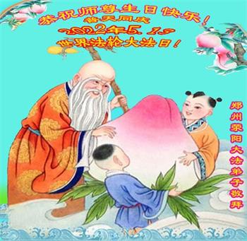河南省郑州市荥阳市大法弟子恭祝师尊生日快乐!恭贺世界法轮大法日!