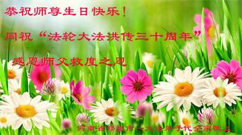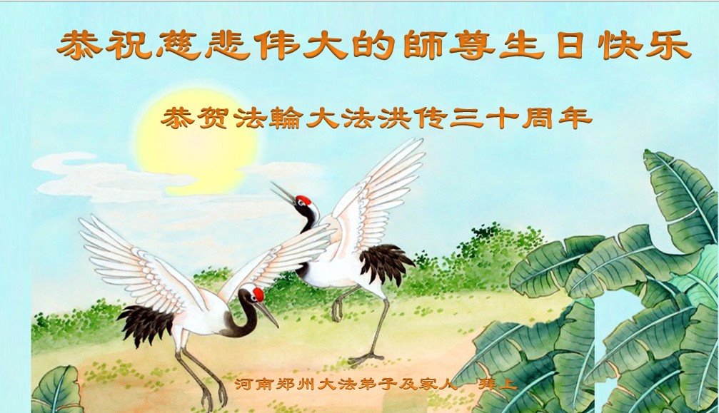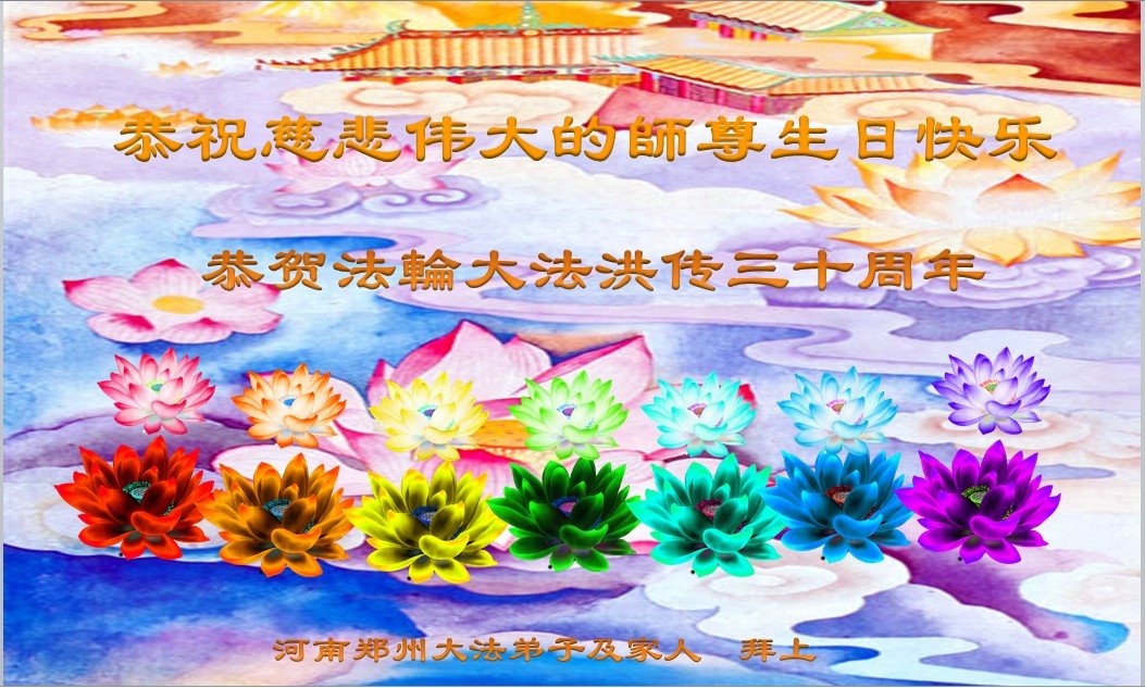 河南省郑州市大法弟子及家人恭贺法轮大法日!恭祝慈悲伟大的师尊华诞!庆祝大法洪传三十周年!