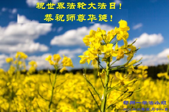 河南省郑州市学法小组大法弟子恭贺法轮大法日!恭祝慈悲伟大的师尊华诞!庆祝大法洪传三十周年!