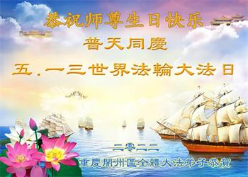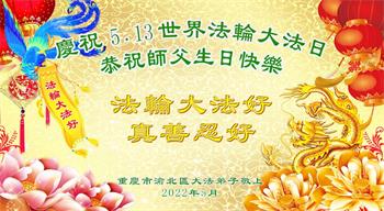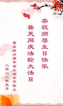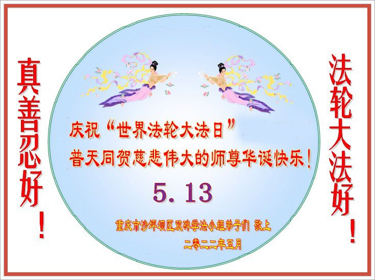 【明慧网二零二二年五月十三日】 重庆市沙坪坝区双碑学法小组弟子们恭祝师尊生日快乐!恭贺世界法轮大法日!