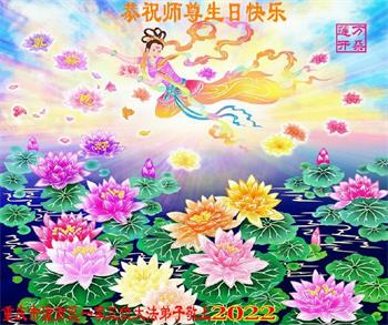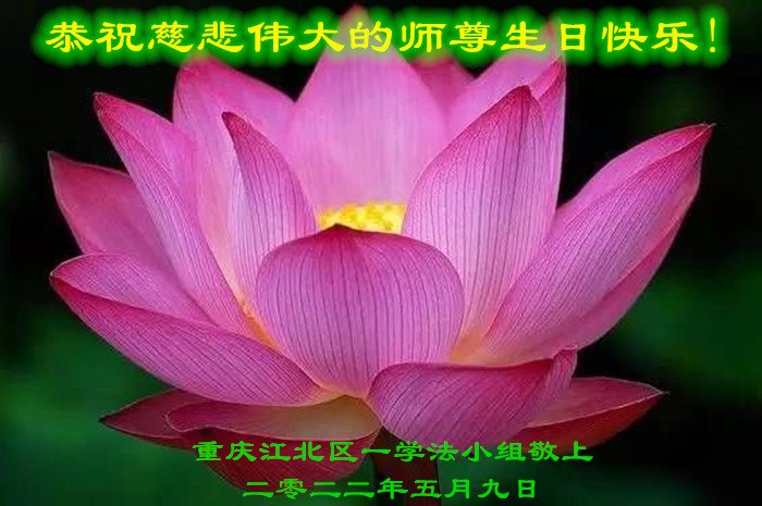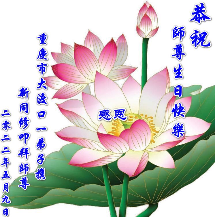 慈悲伟大的师父您好!今年5.13是您七十一岁华诞!作为弟子祝您生日快乐! 我是96年的老弟子,我业力满身,患多种病,苦不堪言。是您使我达到了无病一身轻。这其中您为我付出了无数的心血,承受了许多痛苦,使我才有今天。千言万语也表达不了我对师尊的感激之恩。唯有努力学法,做好三件事,跟师父回家。再次拜谢师父。祝您生日快乐! 重庆市渝北学法小组敬贺法轮大法日!恭祝慈悲伟大的师尊生日快乐!