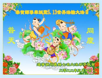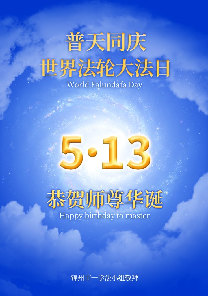 辽宁锦州一大法弟子恭祝师父生日快乐!庆贺世界法轮大法日!庆贺法轮大法洪传三十周年!