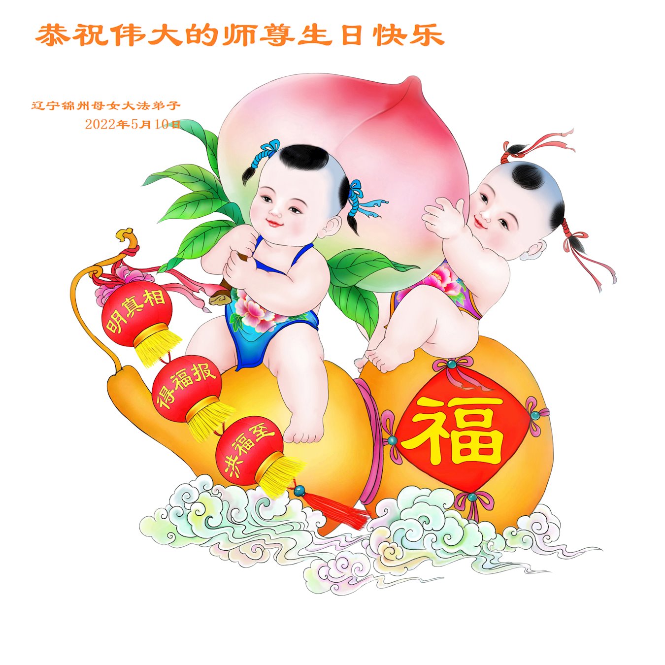 【明慧网二零二二年五月十三日】 辽宁锦州义县母女两位大法弟子恭祝师尊生日快乐!恭贺世界法轮大法日!