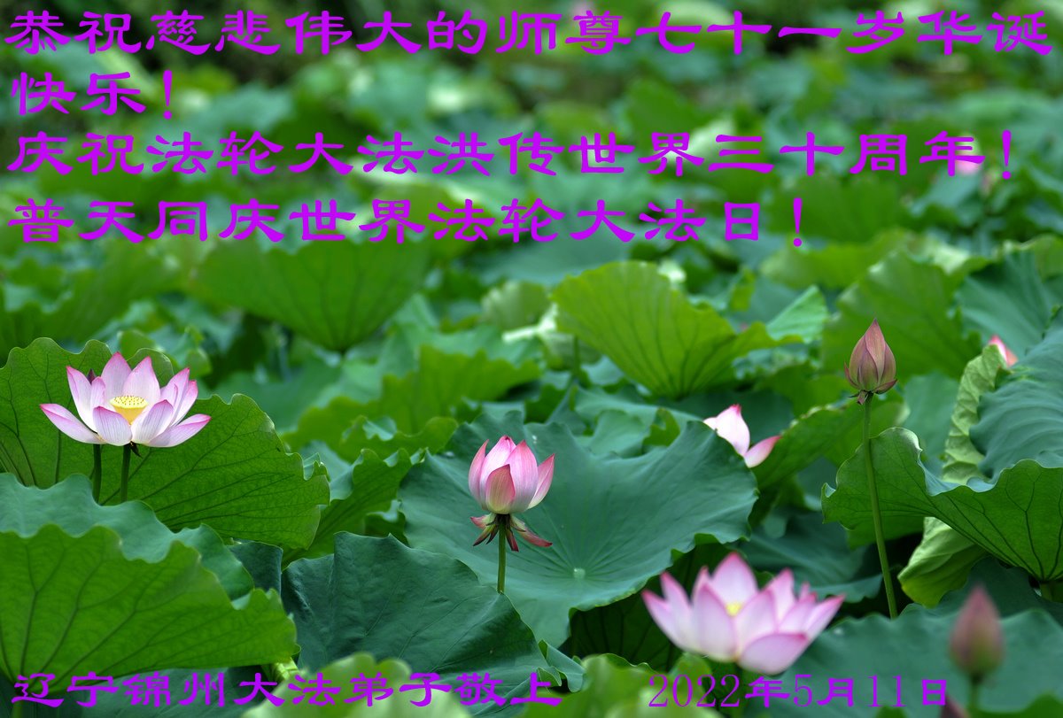 辽宁省锦州市凌海市全体大法弟子恭祝师尊生日快乐!恭贺大法弘传三十周年! 弟子们叩谢师尊慈悲苦度! 以后谨记师尊教诲,精進不怠做好三件事。 法轮大法好!真善忍好! 2022年5月7日 |