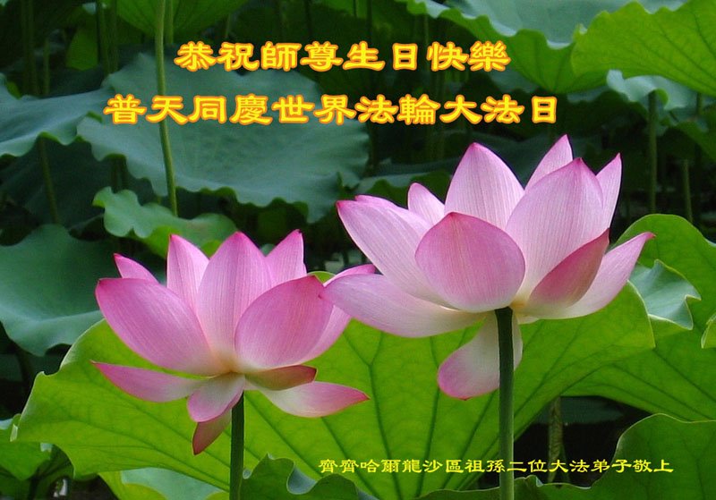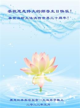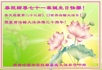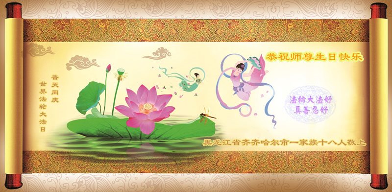 黑龙江省齐齐哈尔市龙沙区三位弟子及家人恭贺世界法轮大法日!