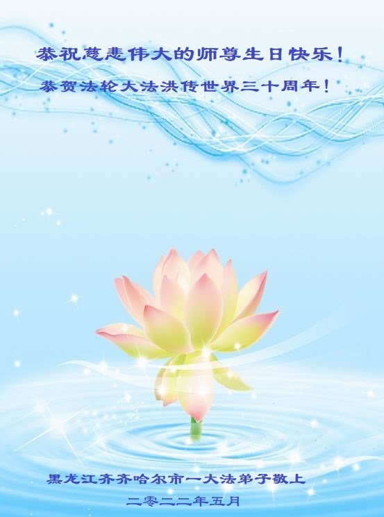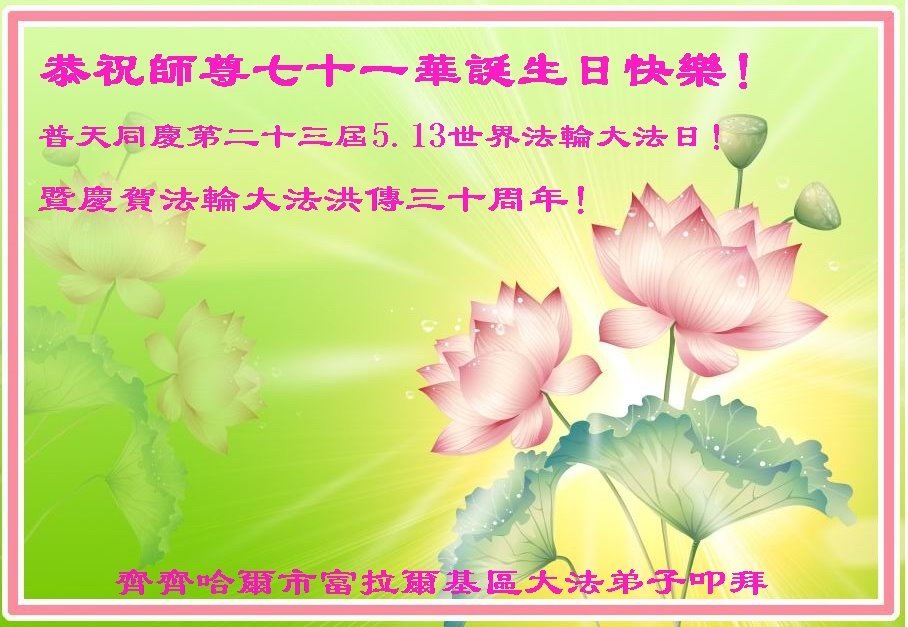 恭祝师父生日快乐! 普天同庆同祝同颂5.13世界法轮大法日! 庆贺法轮大法洪传三十周年! 感恩师父! 黑龙江省齐齐哈尔市一大法弟子恭祝师尊生日快乐!