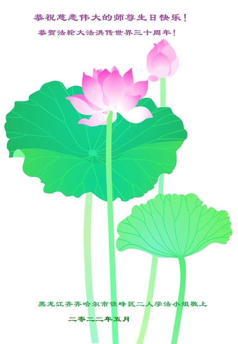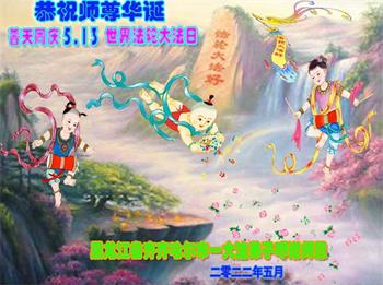 【明慧网二零二二年五月十三日】 黑龙江省齐齐哈尔市龙沙区祖孙两位大法弟子恭祝师父生日快乐!普天同庆世界法轮大法日!