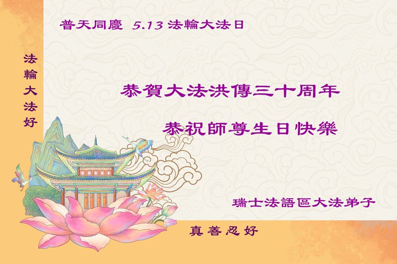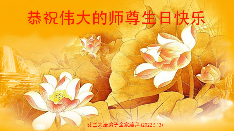 芬兰大法弟子全家跪拜师尊,恭祝慈悲伟大的师父生日快乐! 瑞士法语区大法弟子恭贺世界法轮大法日!恭祝师尊生日快乐!