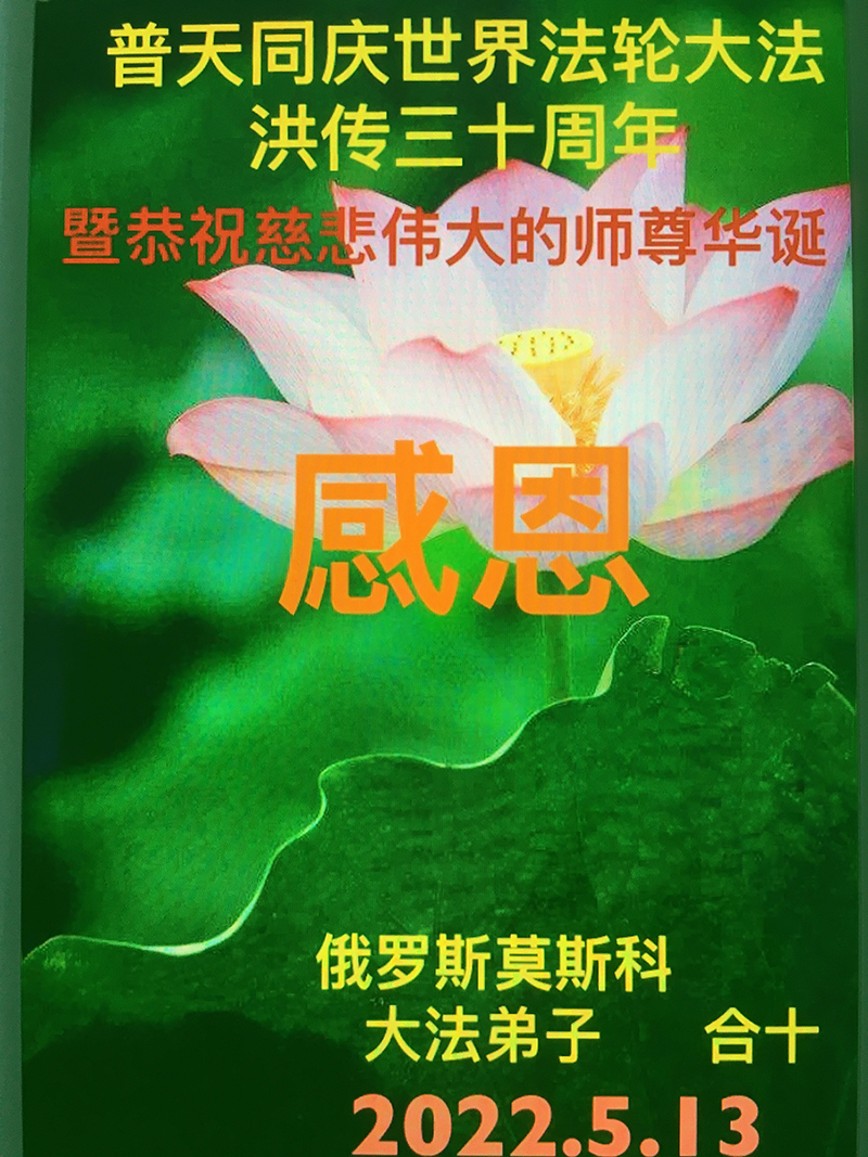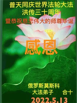 俄罗斯莫斯科大法弟子恭贺师尊华诞暨法轮大法洪传三十周年!