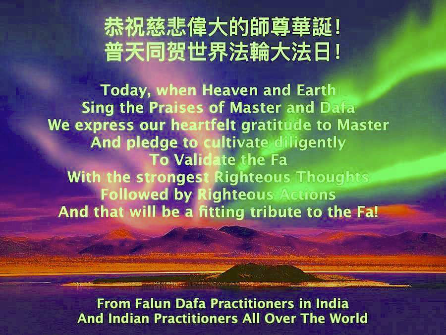 全世界的印度大法弟子恭祝慈悲伟大的师尊华诞快乐!普天同庆世界法轮大法日!