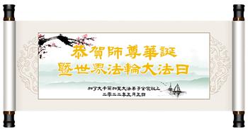 普天同庆世界法轮大法日暨大法洪传三十周年! 香港大法弟子恭祝师父生日快乐!