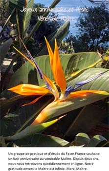 两年来,我们坚持每天在线上一起学法炼功。在此表达我们对师尊的无尽感恩!谢谢师父!谢谢您! 南非大法弟子恭祝师尊生日快乐暨法轮大法洪传三十周年!