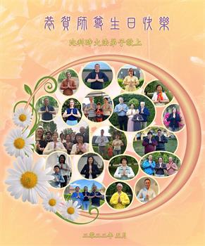 台湾新北市华德炼功点全体大法弟子恭祝慈悲伟大的师尊生日快乐!