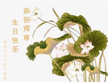 谢师恩 浩浩云汉法光照,凤箫玉管仙乐飘。 天歌仙乐音韵美,琼香氤氲群仙到。 高擎龙旗大法好,幡幢宝节气韵潇。 祥光蔼蔼遍乾坤,宙宇清明贺圣朝。 仙蕊缤纷舞古今,法轮旋转绕玉津。 宝录书名天地众,普天同庆谢师恩。 乌克兰大法弟子叩拜 丹麦全体大法弟子恭祝慈悲伟大的师父生日快乐!普天同庆世界法轮大法日!普天同庆法轮大法洪传世界三十周年!