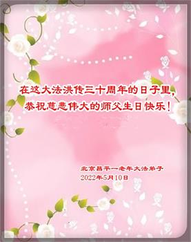 北京昌平一老年大法弟子恭祝慈悲伟大的师父生日快乐!庆贺大法洪传三十周年!