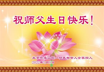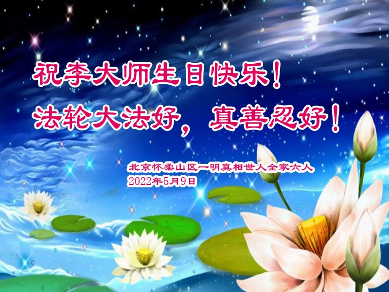 【明慧网二零二二年五月十三日】 北京怀柔山区一明真相世人及家人恭祝师父生日快乐!