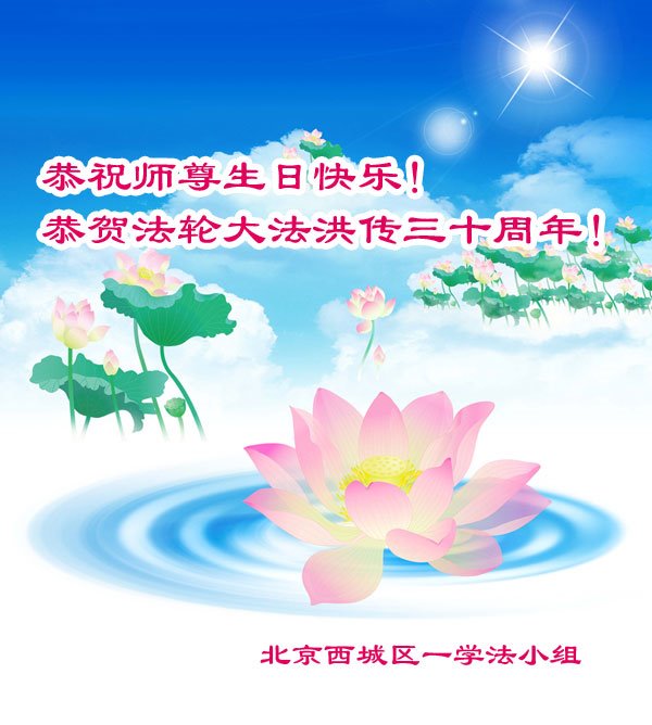 祝师父生日快乐!好人一定有好报! 北京怀柔山区一明真相世人敬上 北京西城区一学法小组大法弟子恭祝师尊生日快乐!恭贺法轮大法洪传三十周年!