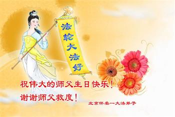 北京怀柔九渡河一大法弟子家属祝师父生日快乐!