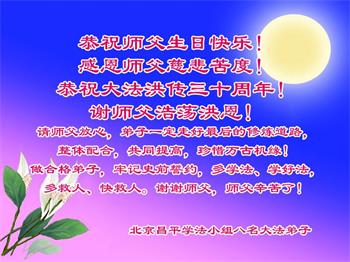 北京昌平马池口镇一大法弟子恭祝师父生日快乐!