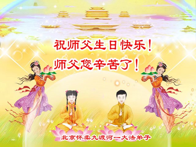 祝伟大慈悲的师父生日快乐!师父您辛苦了! 北京怀柔九渡河一明真相世人敬上 北京怀柔九渡河一大法弟子邻居向师父问好!祝师父生日快乐!