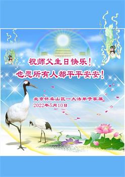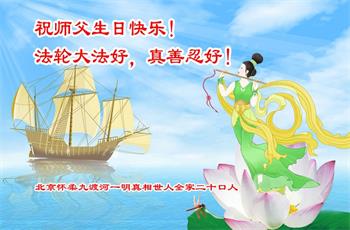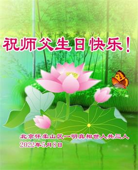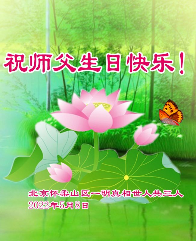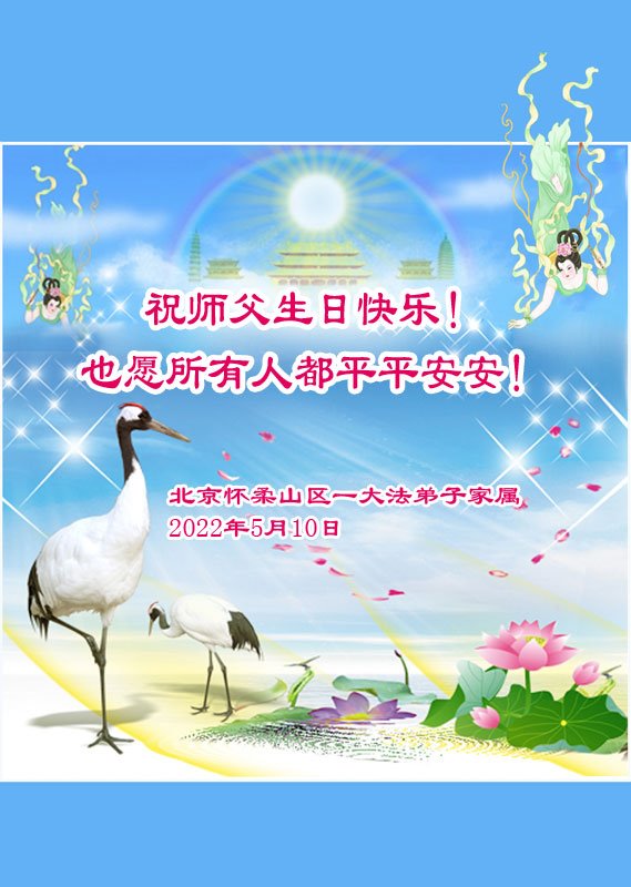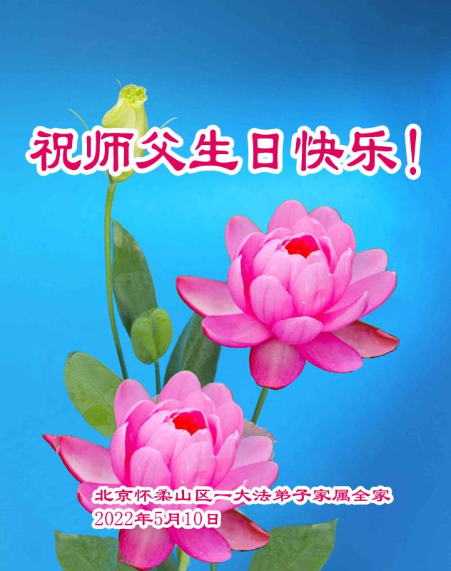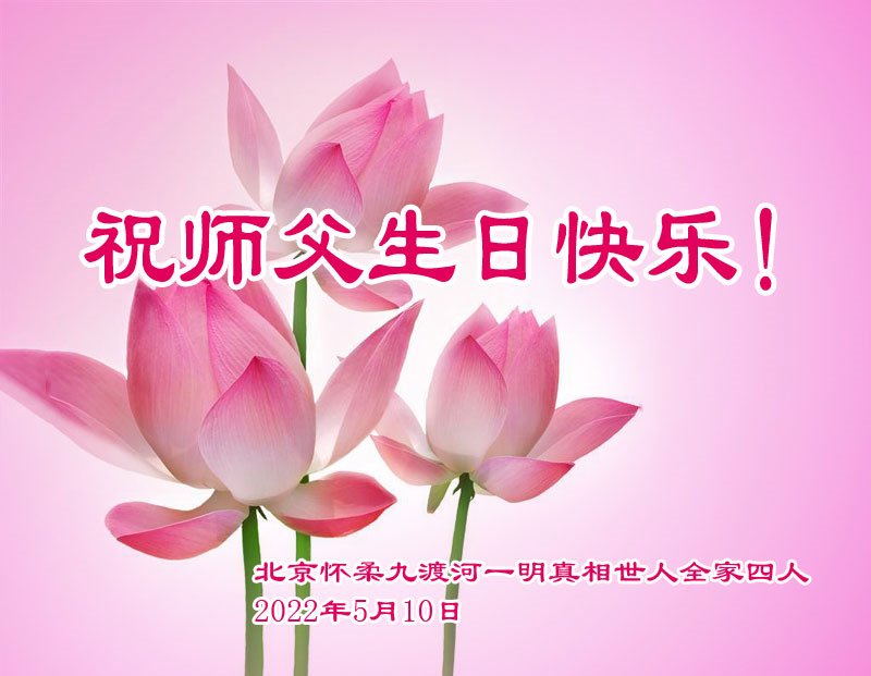【明慧网二零二二年五月十三日】 北京怀柔一大法弟子全家七口人祝师父生日快乐!