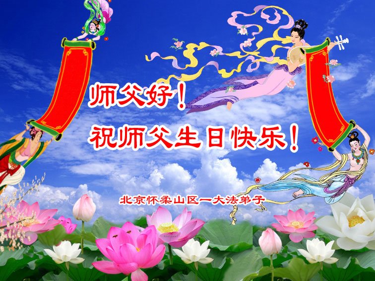 北京怀柔九渡河一大法弟子恭祝师父生日快乐!