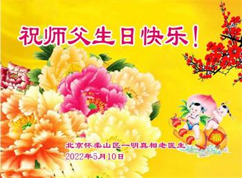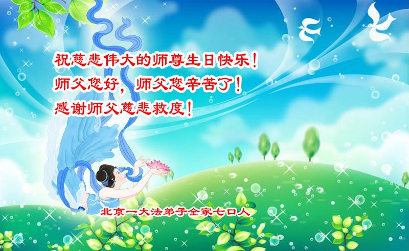 祝慈悲伟大的师尊生日快乐!师父您好!师父您辛苦了!感谢师父慈悲救度! 北京一大法弟子全家七口人敬上 北京怀柔山区一明真相老医生祝师父生日快乐!