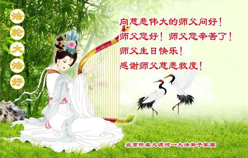 我向慈悲伟大的师父问好!师父您辛苦了!师父生日快乐!感谢师父慈悲救度! 北京怀柔九渡河一大法弟子家属敬上 北京怀柔九渡河一明真相世人祝师父生日快乐!
