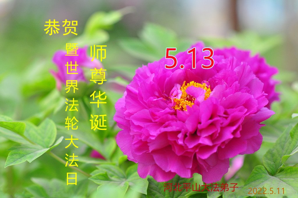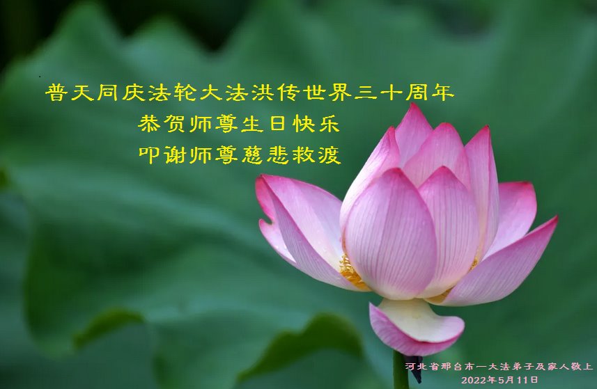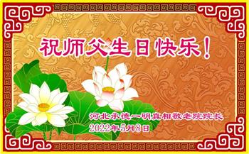 【明慧网二零二二年五月十三日】 河北省沧州市泊头市河东一老年大法弟子学法小组大法弟子恭祝伟大的师父生日快乐!