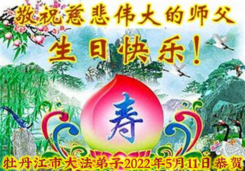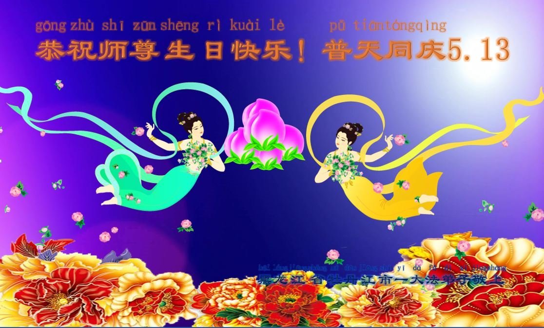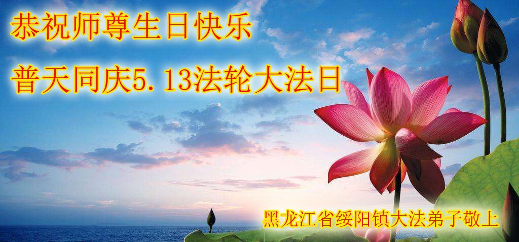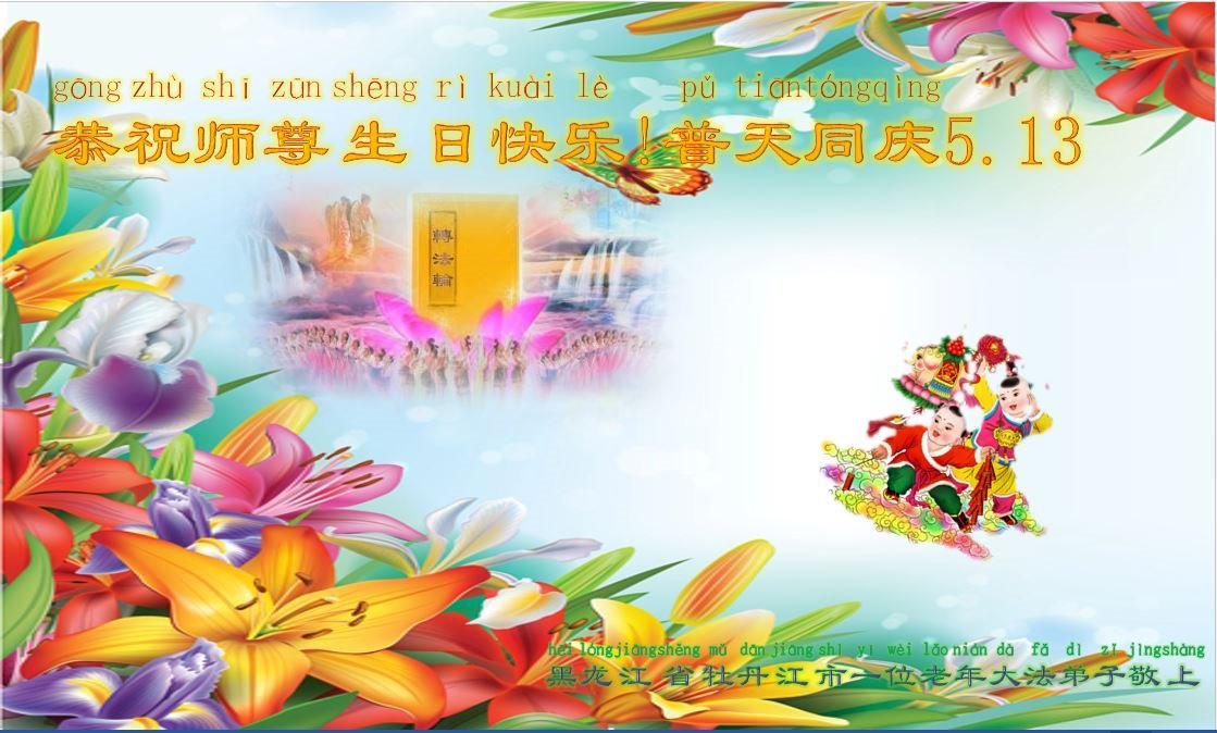 师尊您好!祝师尊生日快乐!感谢师尊的慈悲救度,师尊把弟子从地狱里捞出来,身体得到了净化,明白了人生的目地是返本归真,随师正法救度众生。 弟子一定精進实修,多救人,跟师尊回家。 弟子敬上 黑龙江省牡丹江大法弟子恭贺五月十三日世界法轮大法日!祝师父生日快乐!