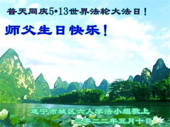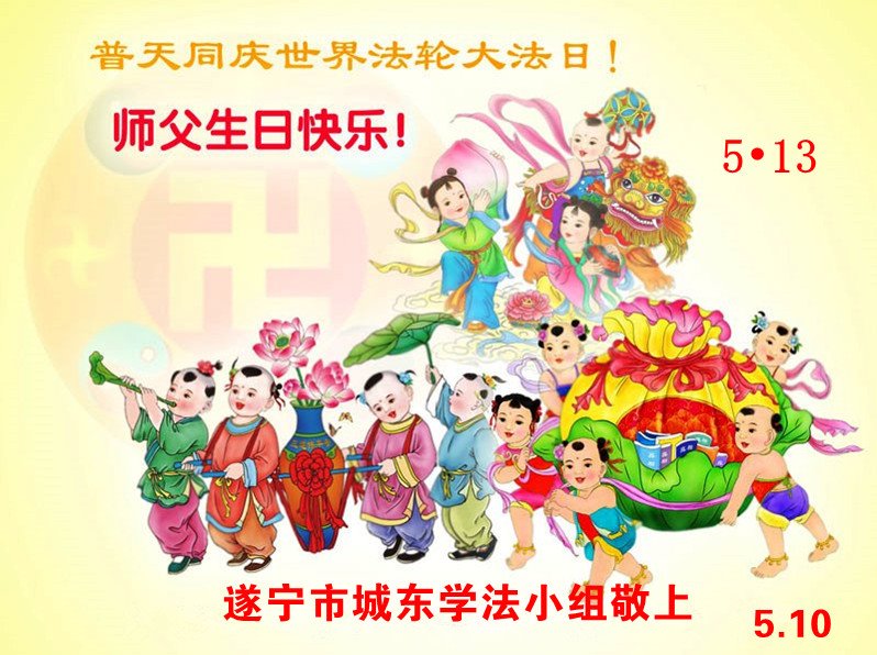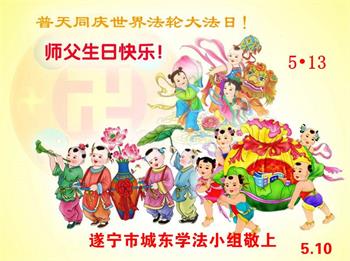 四川省遂宁城区六人学法小组普天同庆5·13世界法轮大法日!师父生日快乐!