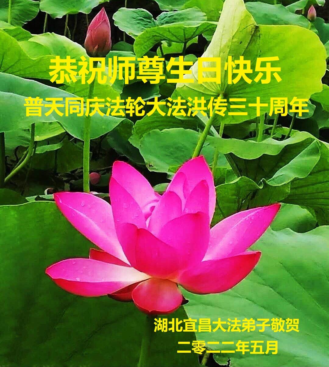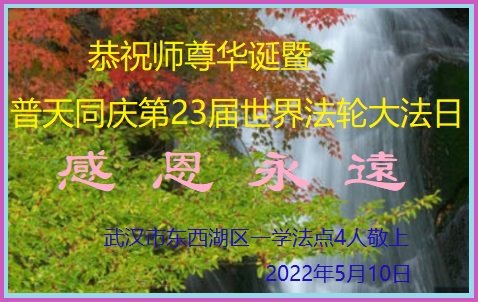 【明慧网二零二二年五月十三日】 湖北省武汉市大法弟子一家恭祝伟大的师尊生日快乐!恭贺世界法轮大法日!