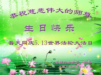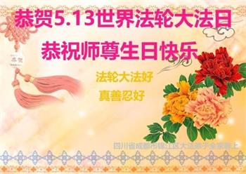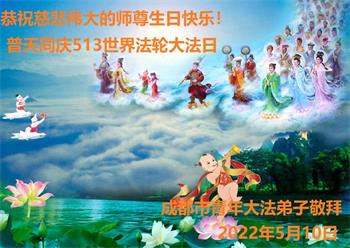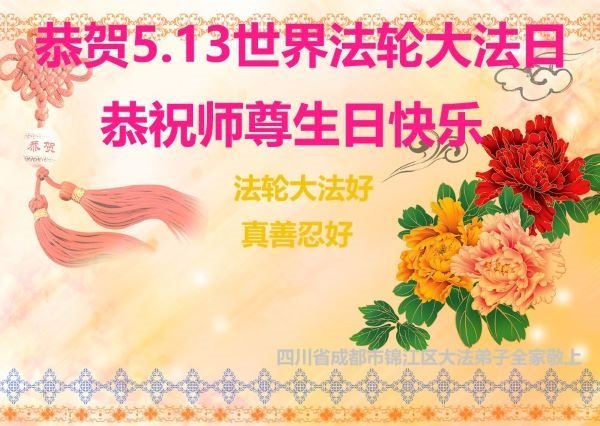 四川省成都市全体大法弟子恭祝世界法轮大法日! 四川省成都市一大法弟子恭贺法轮大法日暨师尊华诞!