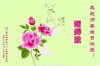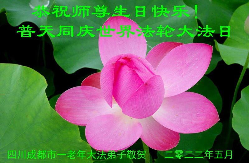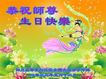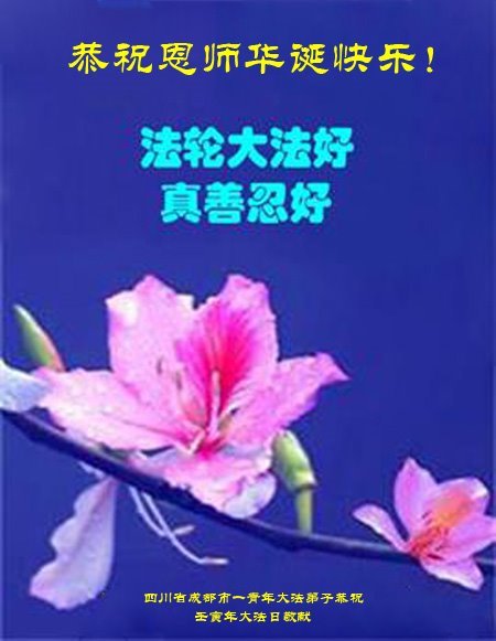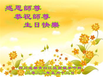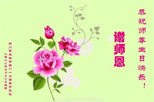 四川省成都一大法弟子恭贺世界法轮大法日!恭祝师父生日快乐!