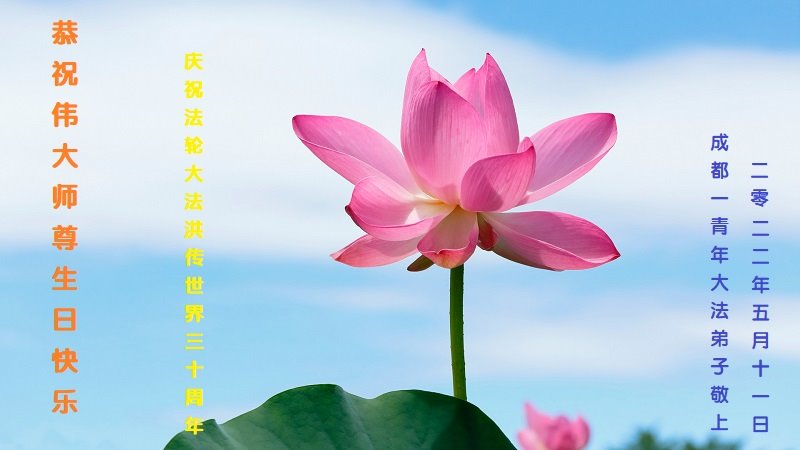【明慧网二零二二年五月十三日】 四川成都一青年大法弟子恭祝师尊生日快乐!庆祝法轮大法洪传世界三十周年!