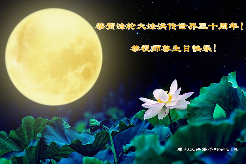 四川省成都大法弟子恭贺法轮大法洪传世界三十周年!恭祝师尊生日快乐!敬拜师尊!